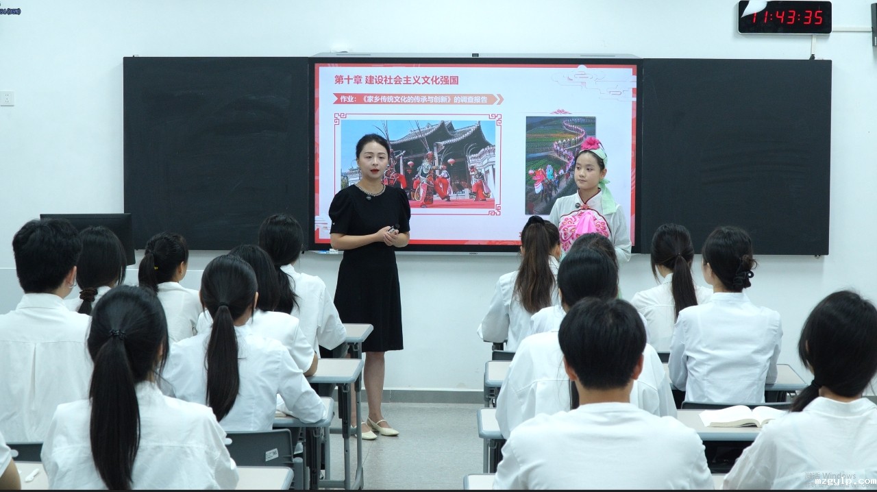 在“师生同台”示范课上,思政课教师燕雪和学生梁鑫共同合作,以《感受非遗之美,传承文化薪火》为主题,从非物质文化遗产的时代新韵为导入,就传承何来、传承何为、何以传承等方面内容开展了详细讲授,帮助学生进一步了解传承和发展中华优秀传统文化的必要性和重要性,鼓励学生争当文化强国的青春建设者。
