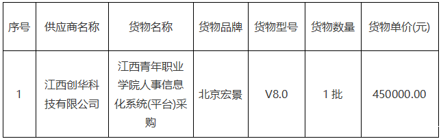 1、成交供应商:江西创华科技有限公司,评审总得分:23分,最终报价:450000元。