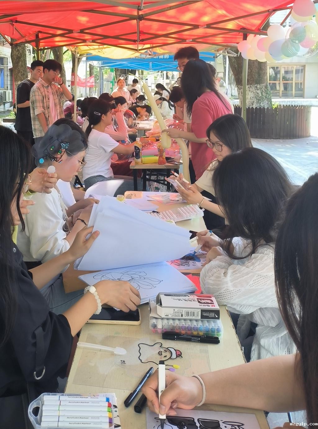 活动现场热闹非凡,师生们纷纷拿起画笔,沉浸在创作的海洋中。在夏日的午后挥洒着自己的创意和灵感,每一笔、每一划都凝聚着对艺术的热爱和对美好生活的向往。