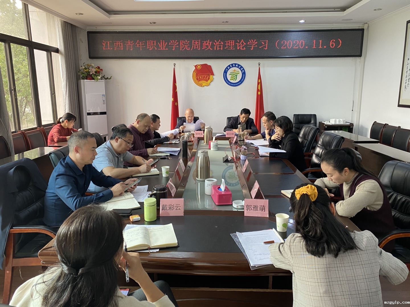 11月6日下午,学校在行政楼会议室召开周政治理论学习,传达学习党的十九届五中全会精神。学校党委书记郭常亮主持学习会,全体党委班子成员参加学习。会议重点学习了《中国共产党第十九届中央委员会第五次全体会议公报》《关于<中共中央关于制定国民经济和社会发展第十四个五年规划和二〇三五年远景目标的建议>的说明》。